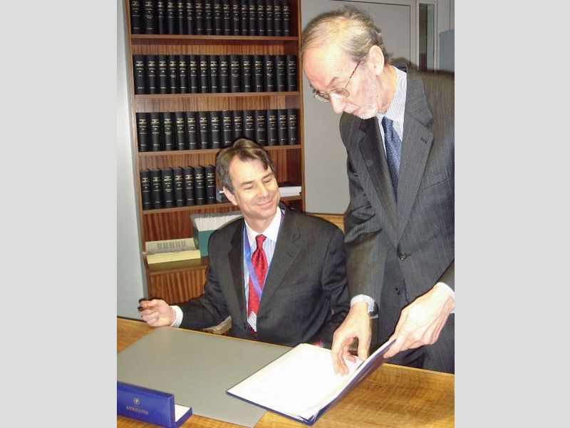 On Monday 19 January 2009, the Hague Convention of 30 June 2005 on Choice of Court Agreements received its first signature. Mr John B. Bellinger III, Legal Adviser to the US Secretary of State, signed the instrument of signature on behalf of the United States of America. Ms Karen K Johnson, Deputy Legal Counselor of the US Embassy at The Hague, as well as HCCH Secretary General Hans van Loon and Secretary Marta Pertegás attended the short ceremony at the Ministry of Foreign Affairs of the Netherlands.