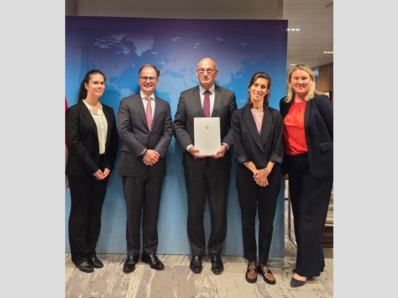 At the ceremony, held at the Ministry of Foreign Affairs of the Netherlands, depositary of the HCCH Conventions, Switzerland was represented by Ms Sandra Sylvia Caluori Bonato, Deputy Head of Mission at the Embassy of the Swiss Confederation to the Kingdom of the Netherlands. The depositary was represented by Mr Jules van Eijndhoven, Head of the Treaties Division, Mr Coos Maas, Legal Officer at the Treaties Division, and Ms Jasmin Vassilev, Country Officer at the Western Hemisphere Department, while the Permanent Bureau of the HCCH was represented by Dr Christophe Bernasconi, Secretary General, Ms Melissa Ford, Secretary (Diplomat Lawyer) and Head of the Transnational Litigation Division, and Ms Melanie Maier, Intern.