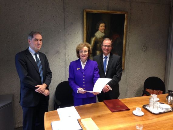 At the ceremony, which took place at the Ministry of Foreign Affairs of the Netherlands (i.e. the Depositary), H.E. Ms María Teresa Infante, Ambassador of Chile, and Third Secretary Mr Juan Enrique Loyer represented the Embassy of Chile. On behalf of the Depositary, Head of the Treaties Division Mr Joseph Damoiseaux and Legal Officer Mr Mark Groen also attended the ceremony. Secretary General Mr Christophe Bernasconi and Legal Officer Mr Brody Warren represented the Permanent Bureau of the Hague Conference on Private International Law (HCCH).