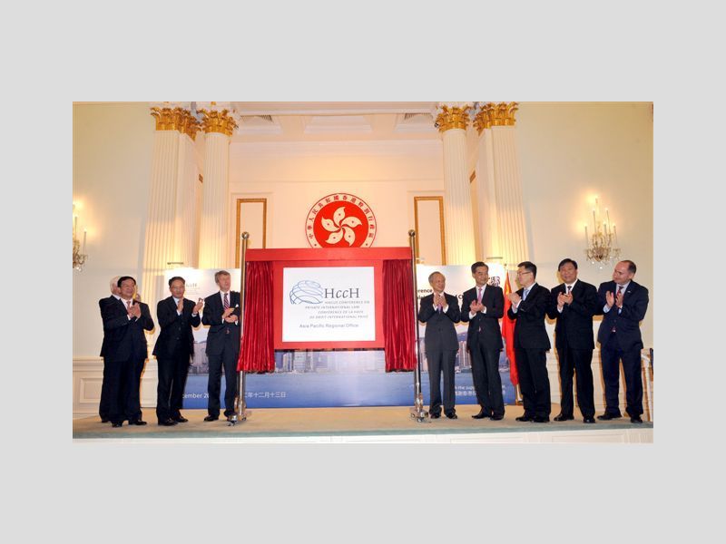 La Conférence de La Haye de droit international privé a célébré aujourd'hui l'ouverture officielle de son nouveau Bureau régional Asie Pacifique à Hong Kong. La cérémonie d'ouverture s'est tenue dans le District central de l'île de Hong Kong, au siège du Gouvernement, où réside le Chef de l'exécutif de la Région administrative spéciale de Hong Kong. Parmi les invités se trouvaient le Secrétaire général de la Conférence de La Haye, ainsi qu'un certain nombre de hauts fonctionnaires, notamment le Chef de l'exécutif de la Région administrative spéciale de Hong Kong, le Vice-Ministre des Affaires étrangères de la République populaire de Chine, et le Secrétaire pour la Justice de la Région administrative spéciale de Hong Kong. Plus de cent autres invités de marque - notamment des Consuls généraux et des représentants de plus de 30 pays et organisations internationales - ont également participé à l'événement.