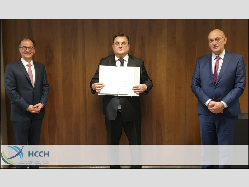 Lors de la cérémonie, qui s’est déroulée au ministère des Affaires étrangères des Pays-Bas, la Fédération de Russie était représentée par S.E. M. Konstantin Chuychenko, ministre de la Justice, Mme Ekaterina Kudelich, directrice du Département du droit international et de la coopération ad interim du ministère de la Justice, M. Kirill Yakimov, directeur adjoint du Département de l’organisation et du contrôle du ministère de la Justice, et Mme Victoria Goncharova, conseillère juridique à l’ambassade de la Fédération de Russie. Le dépositaire était représenté par M. Jules van Eijndhoven, chef de la Division des Traités, et M. Rieks Boekholt, conseiller juridique, tandis que le Bureau Permanent de la HCCH était représenté par le Secrétaire général, Dr. Christophe Bernasconi.