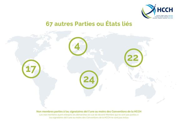 Les Parties suivantes (67) ne sont pas Membres de la HCCH, mais ont signé, ratifié ou adhéré à une ou plusieurs Conventions de la HCCH.