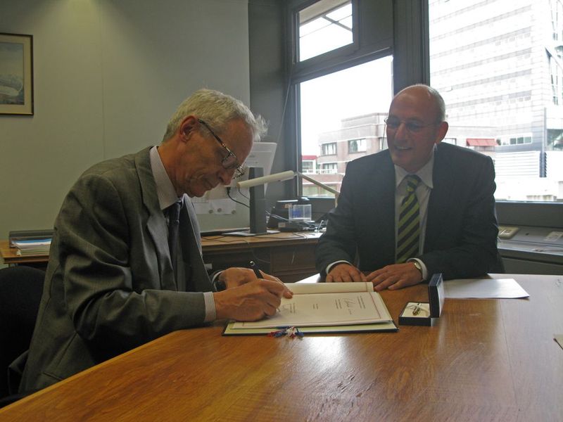 Photo: H.E. Dr Werner Druml, Ambassador of Austria, signs the Convention at the Ministry of Foreign Affairs of the Netherlands