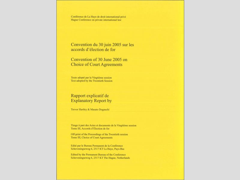 The Hague Conference on Private International Law is pleased to announce the recent publication of the Spanish version of the Explanatory Report on the Hague Convention of 30 June 2005 on Choice of Court Agreements, prepared by Professor Trevor Hartley and Professor Masato Dogauchi. The Oficina de Interpretación y Lenguas of the Spanish Ministry of Foreign Affairs prepared the translation pro bono and the Permanent Bureau revised it with the assistance of Ms Ana Zanettin. The Permanent Bureau wishes to thank Spain and Ms Zanettin for their much appreciated assistance with the Spanish version of the Explanatory Report.